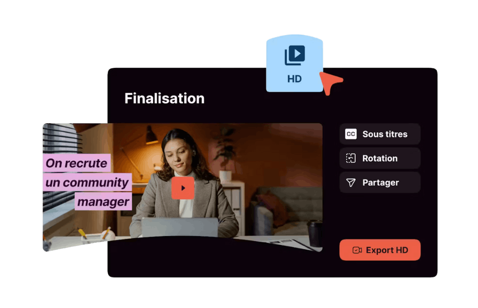 La résolution et la qualité sont préservées, avec un poids optimisé pour faciliter la diffusion. Vous pouvez choisir un format de sortie selon votre besoin (16:9, 1:1, vertical…).