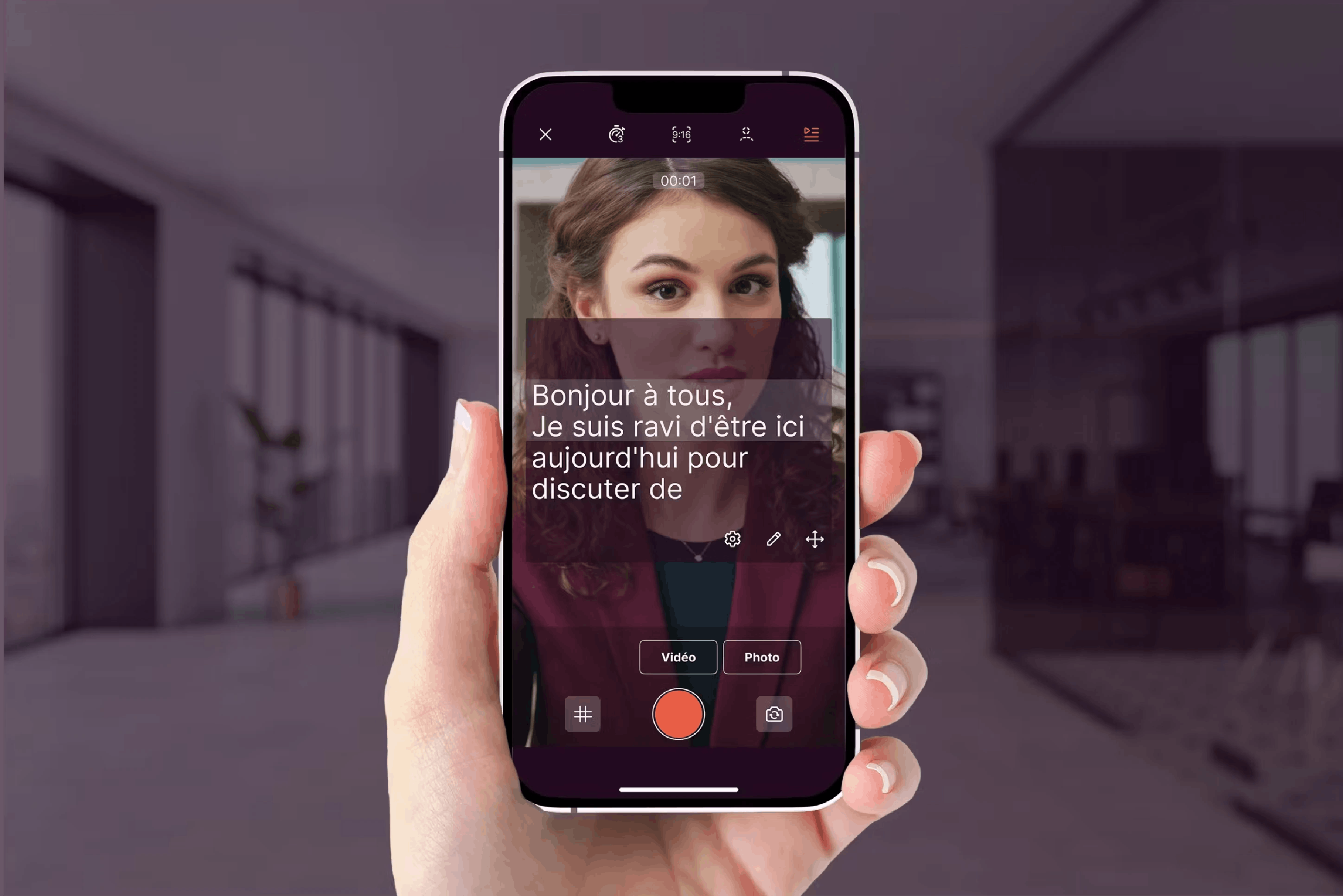 Vous ne vous sentez pas à l’aise d’apprendre par cœur ou d’improviser un script ? Utilisez le prompteur pour rédiger votre texte, l’afficher sur votre écran, et vous filmer tout en le lisant.