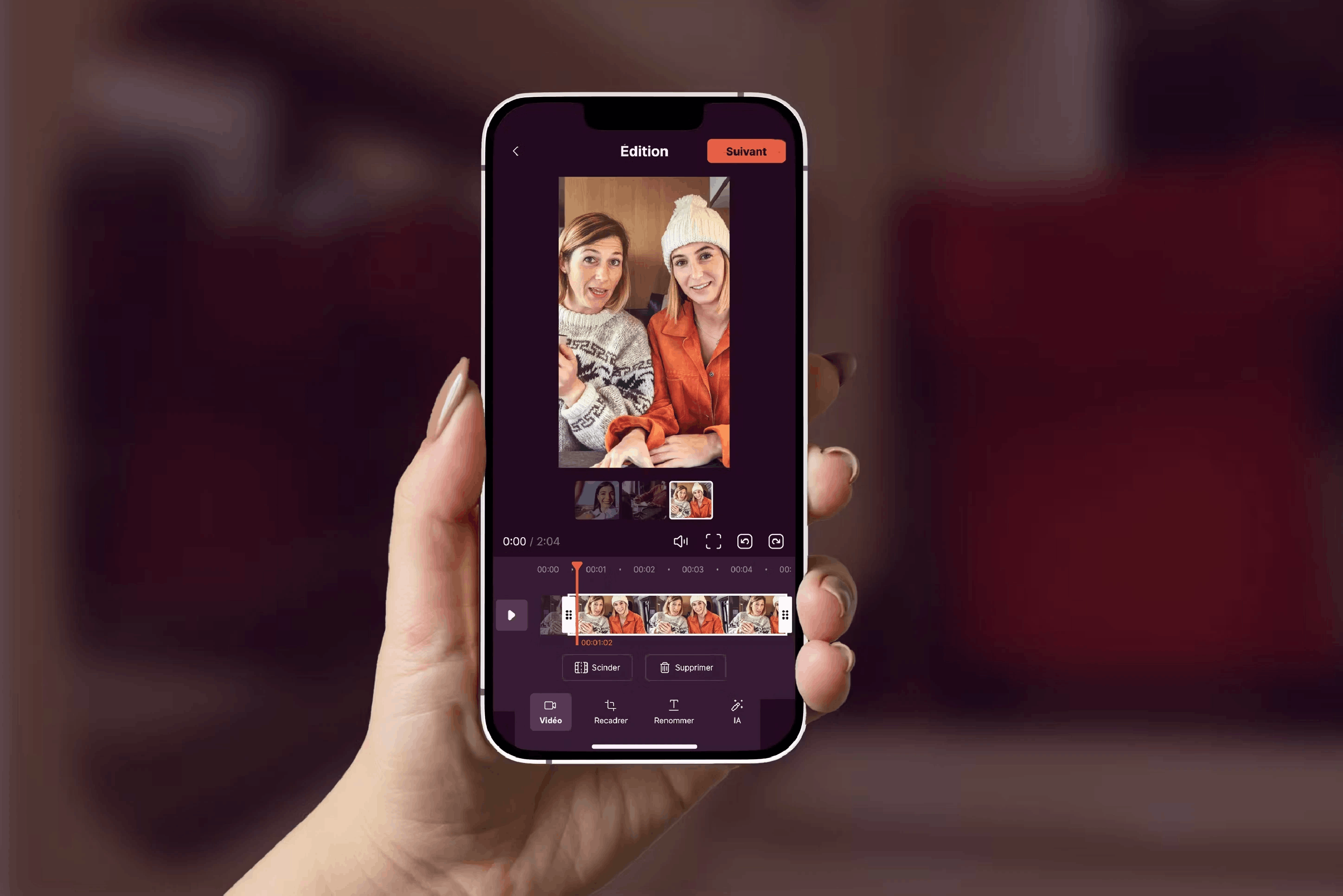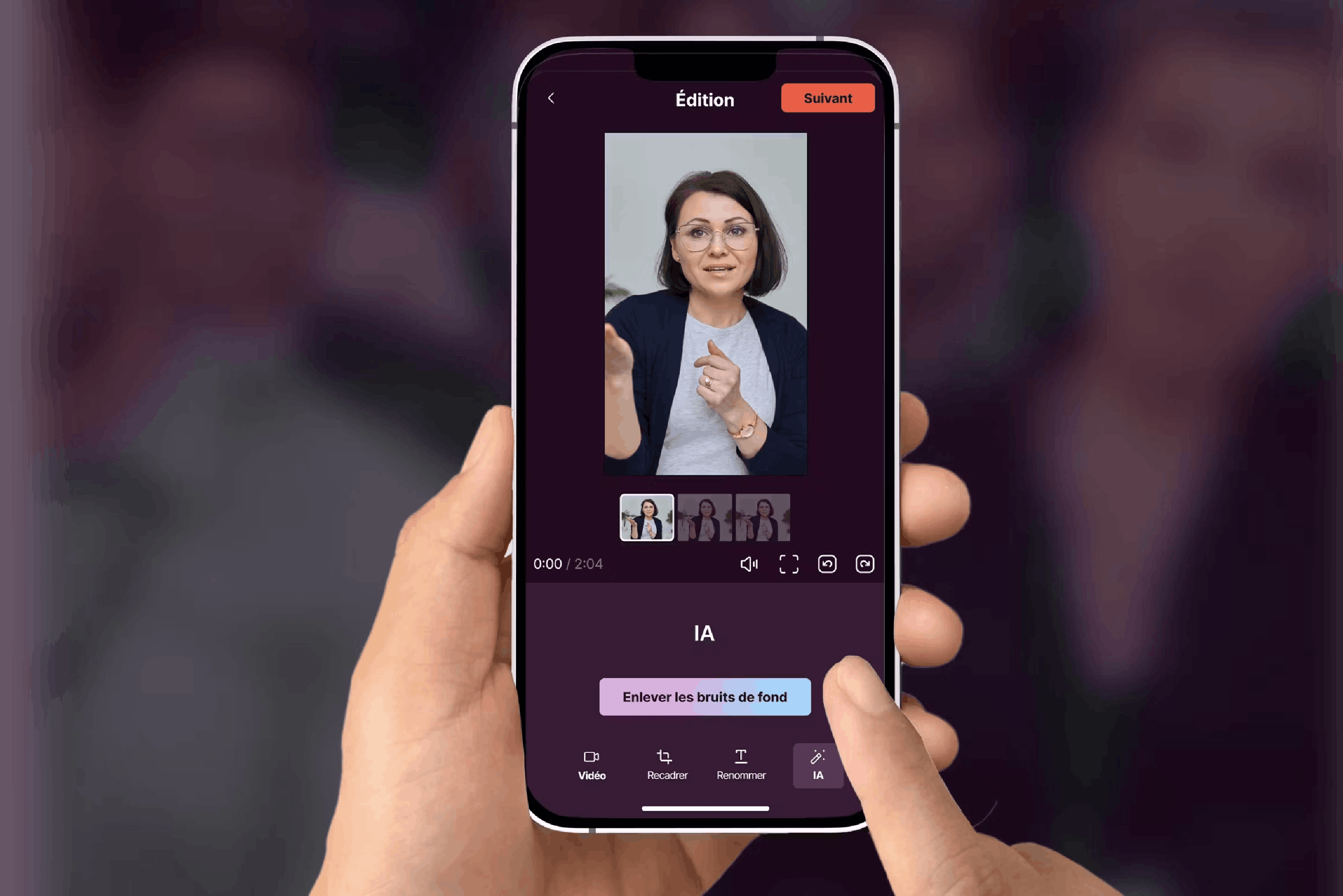 Notre outil vidéo sur appareil iOS ou Android est une version pocket avec des fonctionnalités de base communes avec le logiciel d'édition vidéo sur ordinateur (ajouter et éditer des médias, choisir un format vidéo de votre choix, etc.). L'outil mobile possède également des fonctionnalités exclusives comme la silhouette de cadrage ou bien la suppression des bruits de fond. Le logiciel de création vidéo sur PC possède quant à lui une plus large gamme de fonctionnalités : templates vidéo personnalisés, bibliothèque d'images et vidéos libres de droits, styles graphiques, titres animés, bibliothèque de musiques libres de droits, et bien plus encore ! Notre solution vidéo complète allie le meilleur des deux mondes pour vous proposer des outils rapides et intuitifs même pour les débutants. Nous avons créé une page entièrement dédiée à notre logiciel de montage vidéo sur ordinateur afin de répondre à vos éventuelles questions.